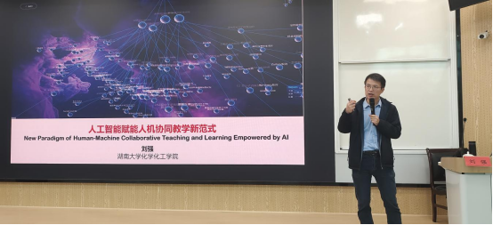 讲座伊始,刘强教授以ChatGPT、DeepSeek等大模型迭代为切入点,结合自身在智慧课程建设与人机协同教学方面的实践经验,强调“建好课”更要“用好课”。他指出,许多教师虽已接触AI工具,但在课堂教学中的实际应用仍显不足,提倡教师要主动将AI技术融入教学全过程,提升课堂吸引力与学生参与度。